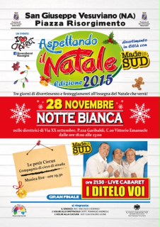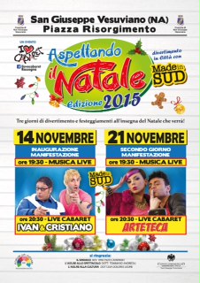 Il 14, 21, 28 Novembre sono state organizzate tre giornate di divertimento e festeggiamenti all'insegna del Natale che verrà. I tre eventi vedranno come protagonisti, tra l'altro, alcuni artisti di "Made in SUD" come "IVAN&CRISTIANO", gli "ARTETECA" ed "I DITELO VOI".