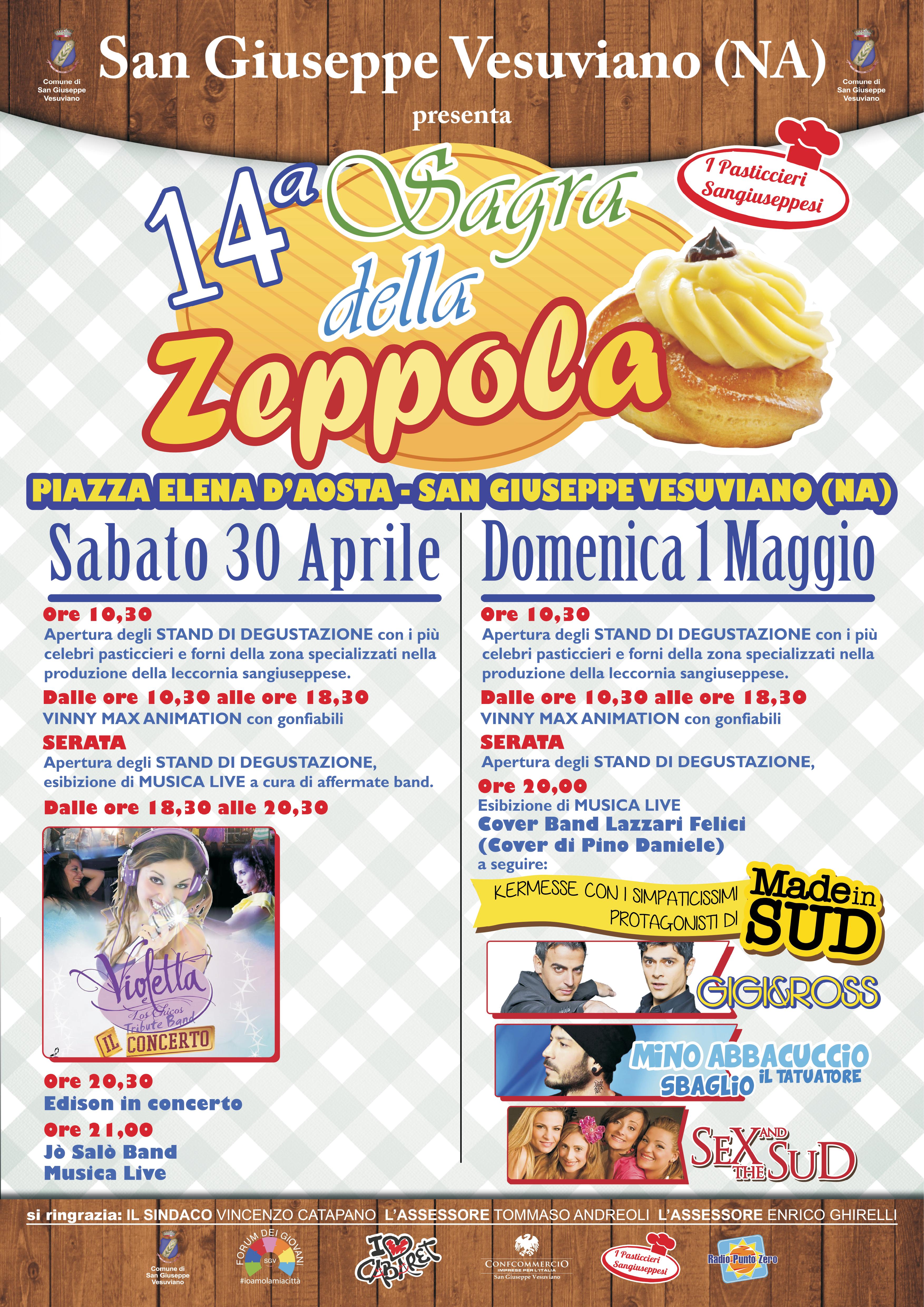 Tutto pronto per la quattordicesima edizione della “Sagra della zeppola” che si terrà sabato 30 aprile e domenica 1 maggio in piazza Elena d'Aosta.