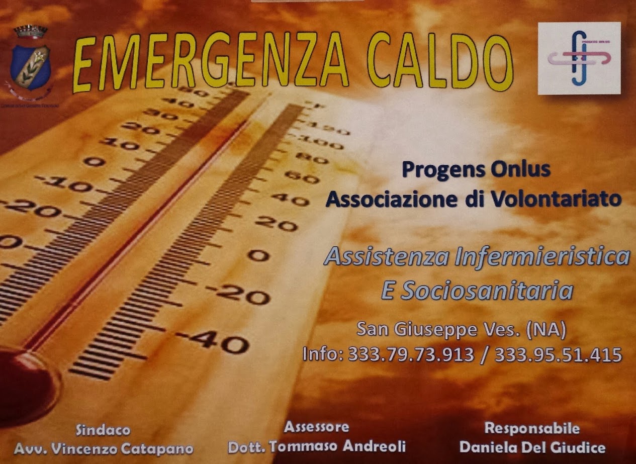 Il Comune di San Giuseppe Vesuviano e l'associazione di volontariato Progens Onlus saranno impegnati in sinergia per combattere l'afa e l'emergenza caldo. La Progens Onlus offrirà ai cittadini assistenza infermieristica e socio-sanitaria.