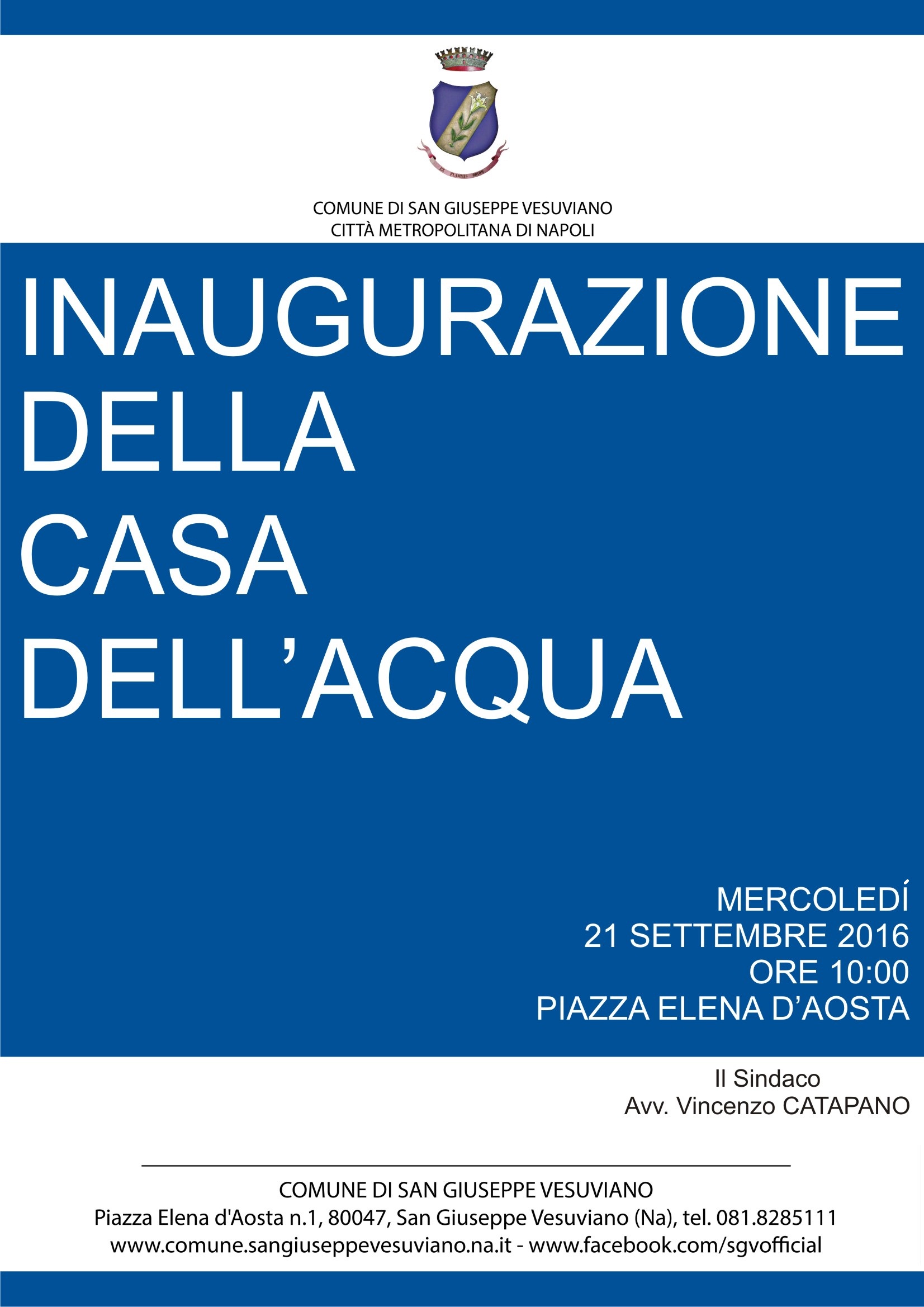 Domattina, alle ore 10:00, si svolgerà la cerimonia di inaugurazione della nuova "casa dell'acqua" in piazza Elena d'Aosta. L'impianto, unitamente a quello installato al rione Belvedere ed agli erogatori forniti all'Istituto Comprensivo 3° Ceschelli ed alla Scuola Secondaria di I grado Ammendola - De Amicis, contribuirà a ridurre l'impatto ambientale provocato dal consumo di acqua in bottiglia ed al risparmio di emissioni di CO2 (anidride carbonica).