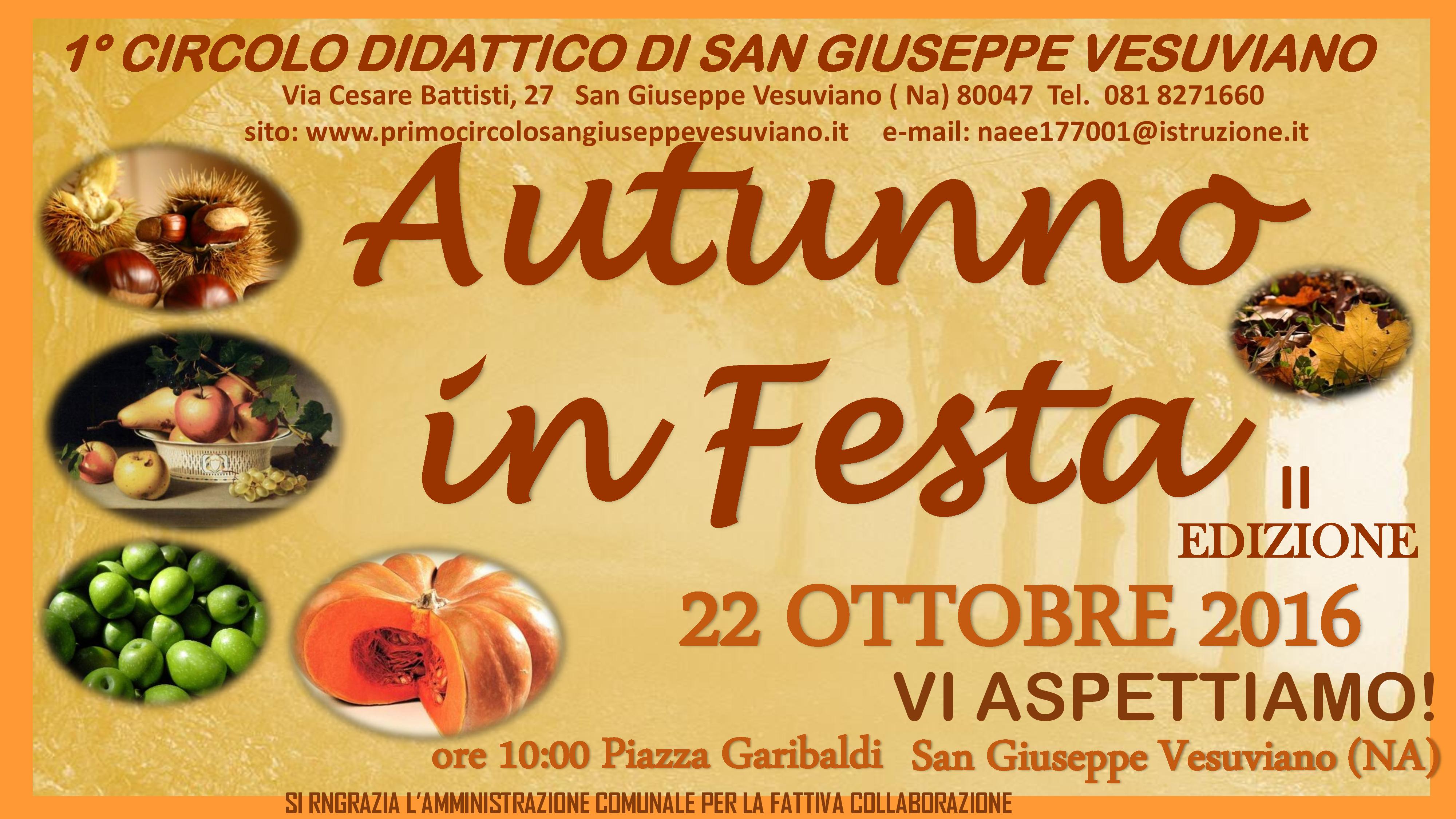 Ritorna in piazza Garibaldi la manifestazione “Autunno in festa”, promossa dal Primo Circolo Didattico in collaborazione con il Comune di San Giuseppe Vesuviano e giunta, quest'anno, alla seconda edizione.