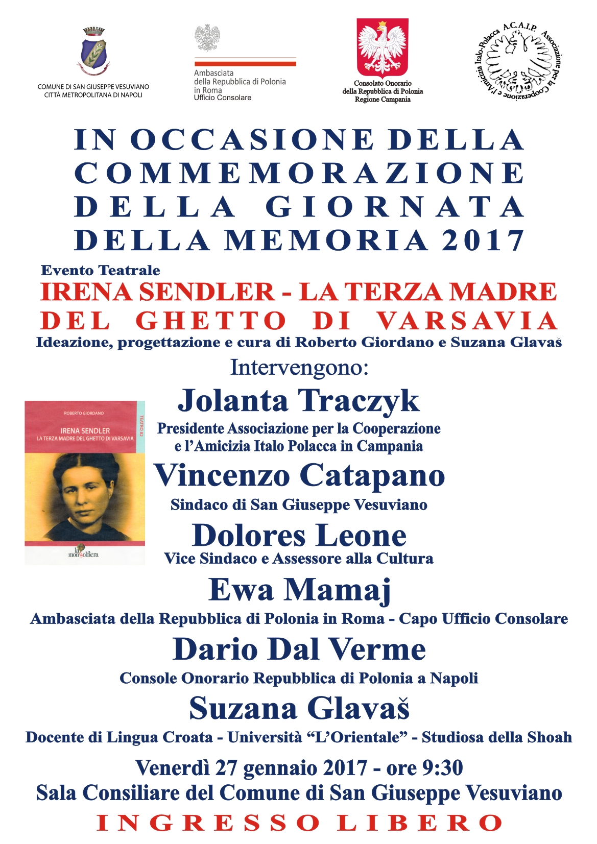 Parteciperanno Jolanta Traczyk, presidente dell'associazione per la cooperazione italo polacca, Vincenzo Catapano, sindaco di San Giuseppe Vesuviano, Dolores Leone, vice sindaco ed assessore alla cultura, Ewa Mamaj, capo ufficio consolare dell'Ambasciata di Polonia, Dario Dal Verme, Console Onorario della Repubblica di Polonia a Napoli e Suzana Glavaš, docente di lingua croata presso l'Università degli Studi di Napoli“L'Orientale”.