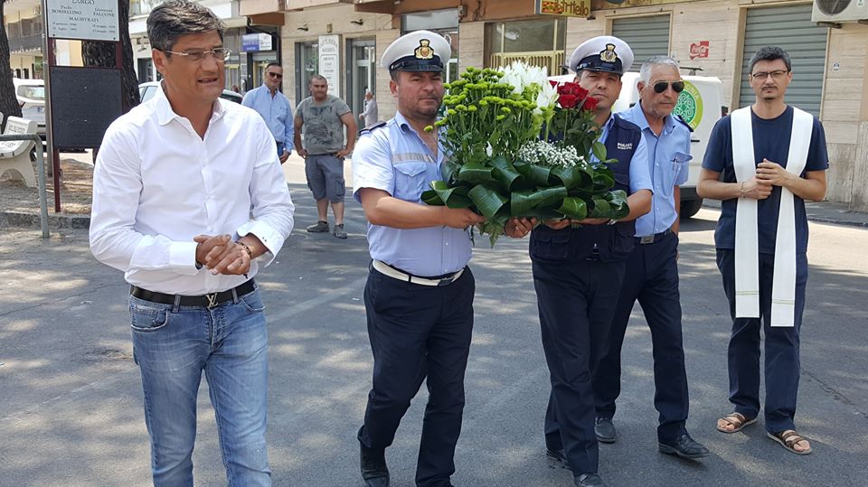 Il sindaco Vincenzo Catapano, alla presenza di padre Rosario Avino, direttore del Centro Giovanile dei Padri Giuseppini del Murialdo, del Comandante della P.M. Ruggiero Rosati, e degli amministratori, ha ricordato la figura del magistrato italiano che sacrificò la sua vita per gli ideali di libertà e di giustizia. Subito dopo è rientrato in Comune per un vertice sull'emergenza roghi ancora in atto e per i provvedimenti da adottare.