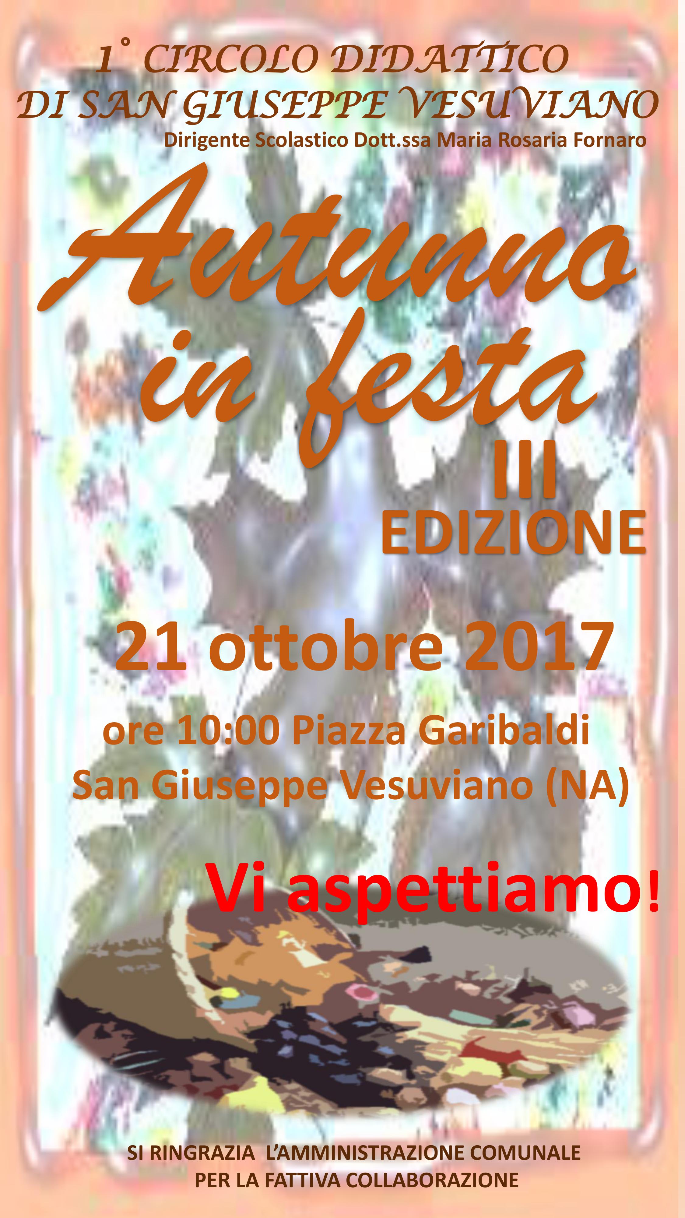 Ritorna in piazza Garibaldi la manifestazione “Autunno in festa”, promossa dal Primo Circolo Didattico in collaborazione con il Comune di San Giuseppe Vesuviano e giunta, quest'anno, alla terza edizione.