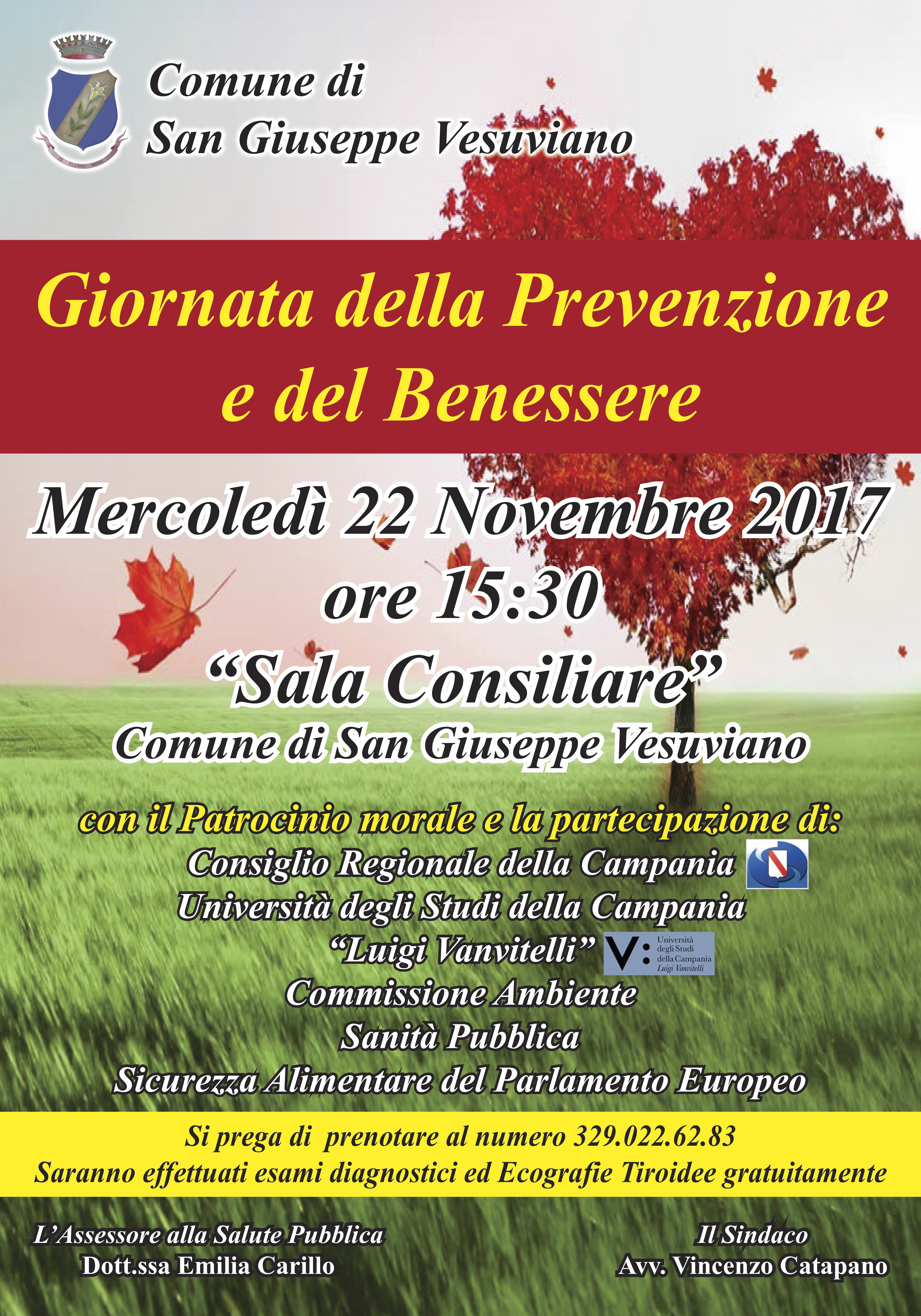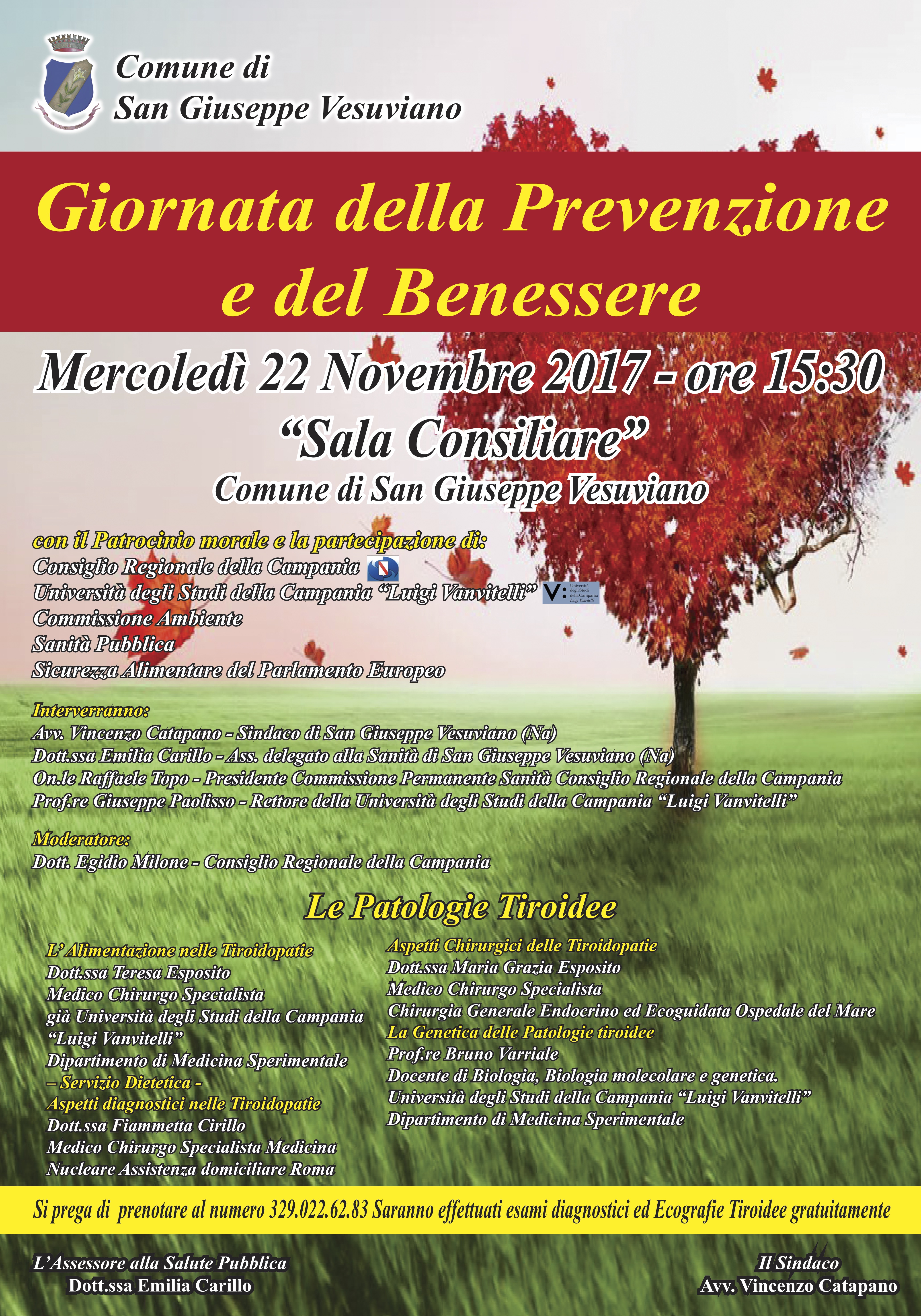 Mercoledì 22 novembre, alle ore 17:30, in occasione della Giornata della Prevenzione e del Benessere, la Sala Consiliare del Comune di San Giuseppe Vesuviano ospiterà il convegno sulle patologie tiroidee, promosso in collaborazione con il Consiglio Regionale della Campania, con l’Università degli Studi della Campania “Luigi Vanvitelli” e con la Commissione Ambiente, Sanità Pubblica e Sicurezza Alimentare del Parlamento Europeo.