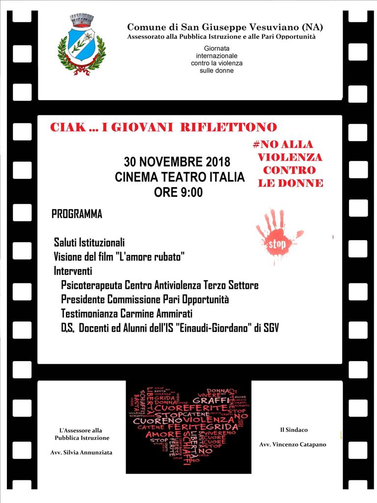Venerdì 30 novembre 2018, alle ore 9:30, presso il cinema teatro Italia, gli studenti dell'I.S.I.S. Einaudi-Giordano ribadiranno il loro no alla violenza sulle donne.