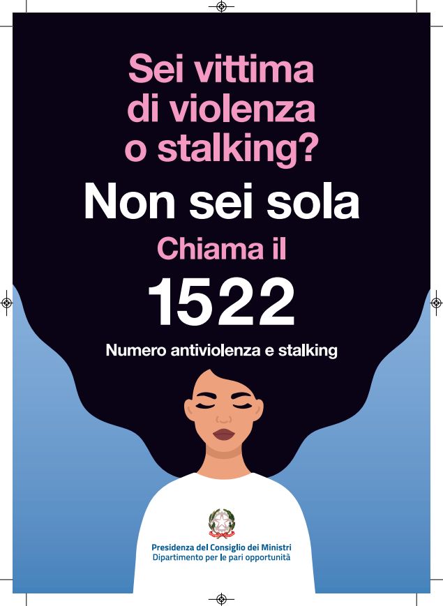 La Ministra per la famiglia, la natalità e le pari opportunità, Eugenia Roccella, con il DPCM 11 aprile 2024, pubblicato in Gazzetta Ufficiale del 29 maggio 2024, ha rinnovato un messaggio di sostegno e vicinanza alle donne vittime di violenza e stalking attraverso un manifesto recante il numero verde 1522 da attivare in caso di pericolo, contenente la seguente dicitura “Sei vittima di violenza o stalking? Non sei sola. Chiama il 1522 – numero antiviolenza e stalking”.
